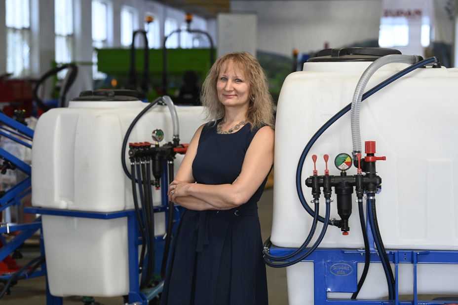 Firmu převzala od svého otce už v roce 2001. A nebylo to pro ni lehké rozhodnutí. Křehká blondýnka se tehdy postavila do vedení firmy v oboru, kterému do té doby dominovali muži. „Mně to tak nepřijde, ale je to neobvyklé. Hlavně to vidím na reakcích chlapů, kteří přijdou poptávat stroje. Pravdou je, že když přijede žena pro náhradní díly, a vím, že ona s tím traktorem fakt jezdí, balíkuje seno, dělá s mulčovačem a je to navíc krásná ženská, mám z toho radost. Těch je ale minimum.“