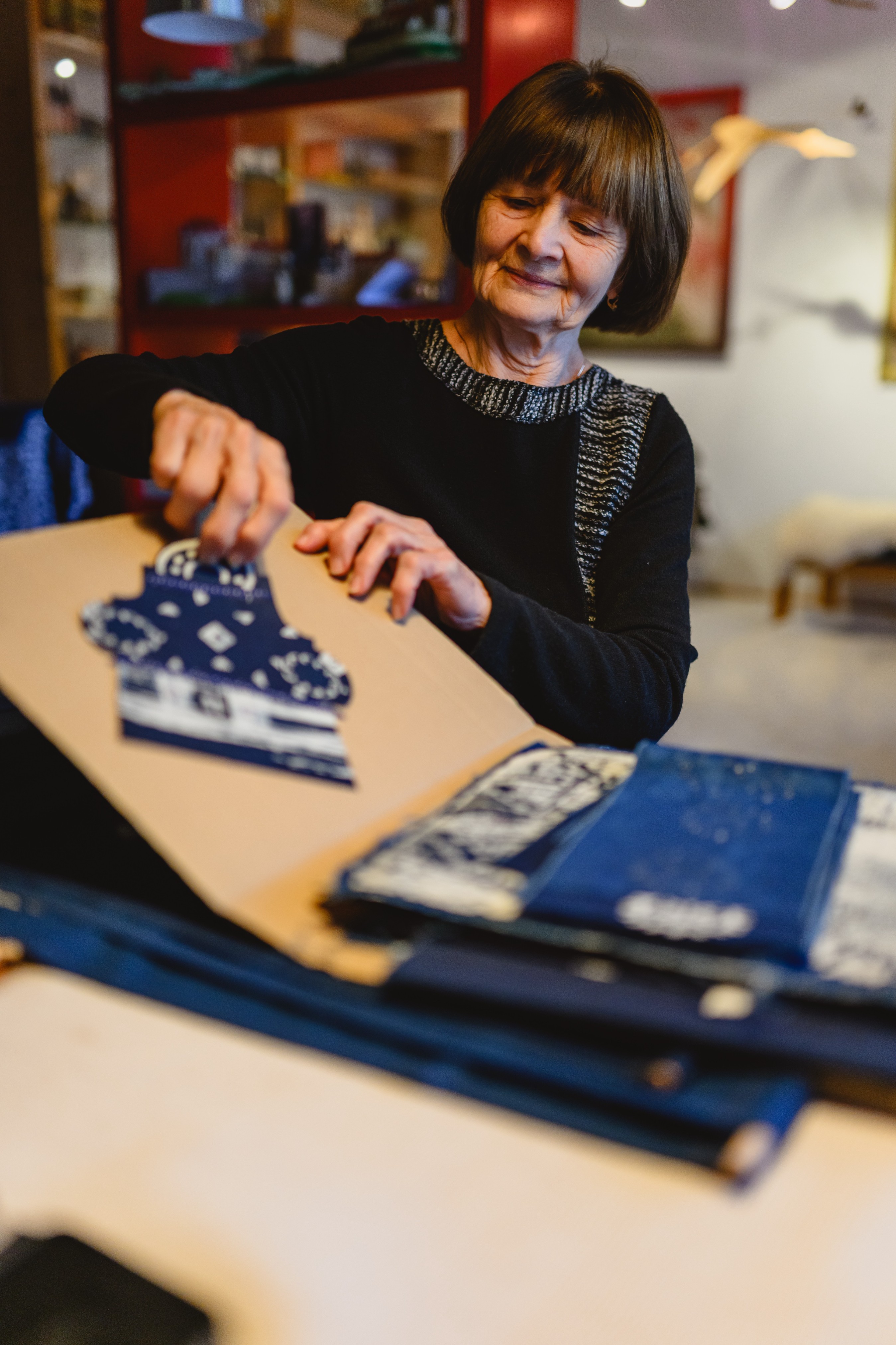 Modrotisk jí vyhovuje i proto, že podle jejích slov v sobě spojuje umění a řemeslo. „Na modrotisku je úžasné, že můžete staré vzory zkombinovat s moderními a pořád to vypadá krásně. Ať už jsou to lístečky, kytičky, puntíky, ta rozmanitost je prostě neskutečná. Věřím, že i v tom je síla modrotisku, aby přežil dále,“ vypráví s nadšením výtvarnice, která svůj rukodělný talent předala dvěma dcerám a vnučce, jež nyní studuje oděvní návrhářství.