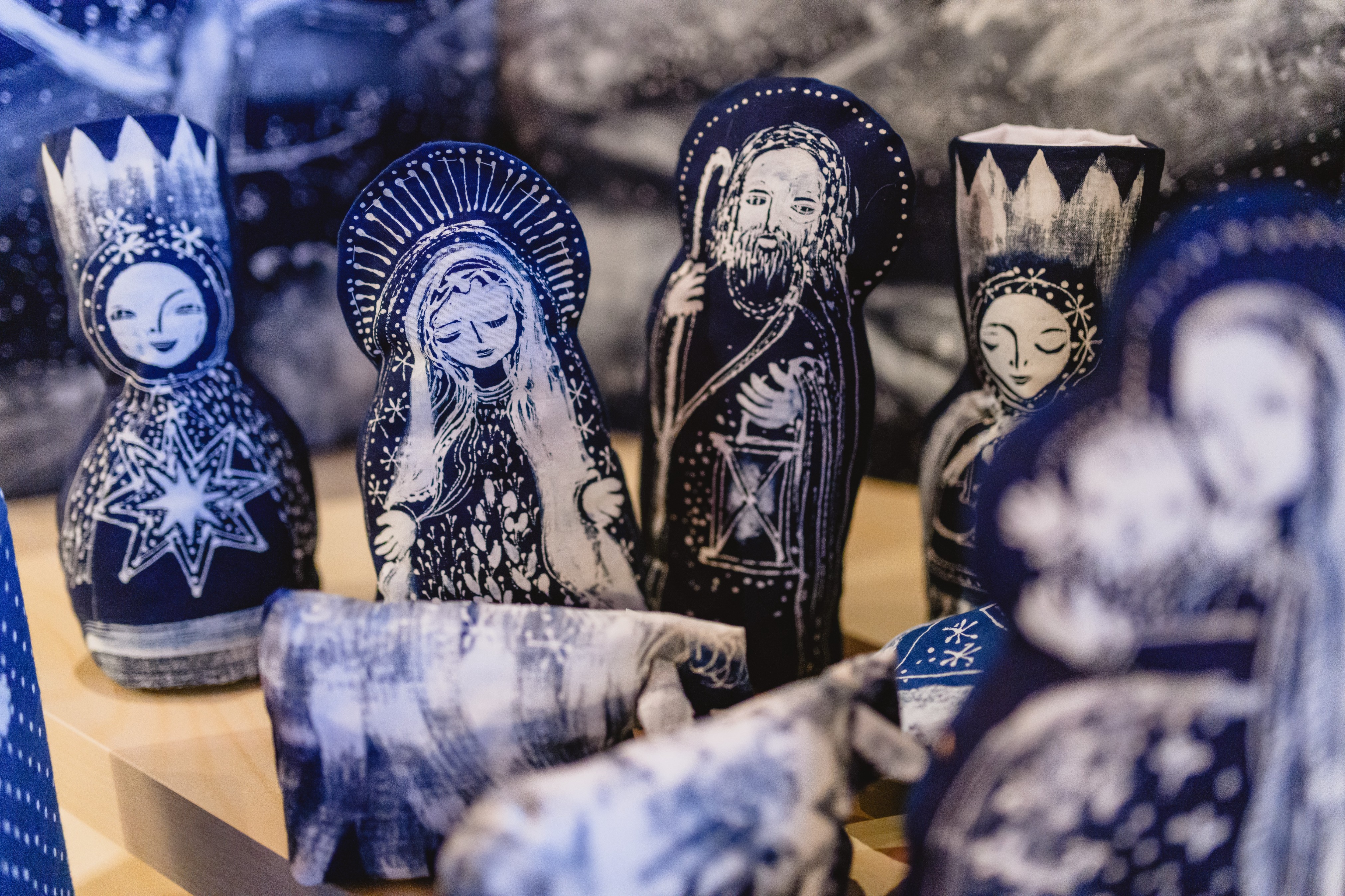 Když si prohlédnete třeba právě modrotiskové figurky z betléma, hned vás napadne, že vypadají, jako by je někdo odnesl přímo z malého divadélka. A nejste daleko od pravdy, Antonie Dostálková má velmi blízko i k loutkám. Dokonce tento obor dva roky dálkově v Praze studovala.
