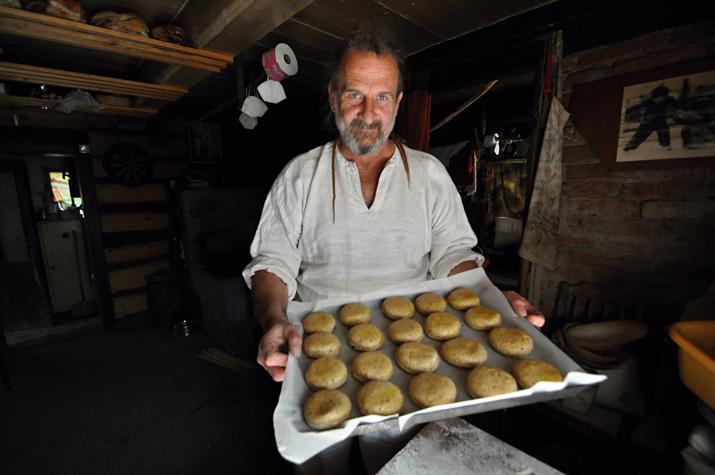 Chleba se naučil péct doslova rukama. „V troubě v chalupě nemám termostat. Takže mé pečení je o dotycích v peci. Teď už mně stačí, abych vložil ruku do trouby, a už vím. Mám to dobře rozpálené, můžu sázet chleba…“
