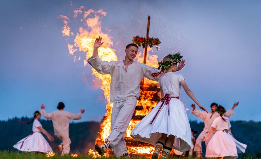 Se západem slunce v jedné z nejkratších nocí v roce tady stejně jako jejich předkové zapalují posvátný oheň, o kterém věří, že je očistí a přinese zdraví a energii do dalšího roku.