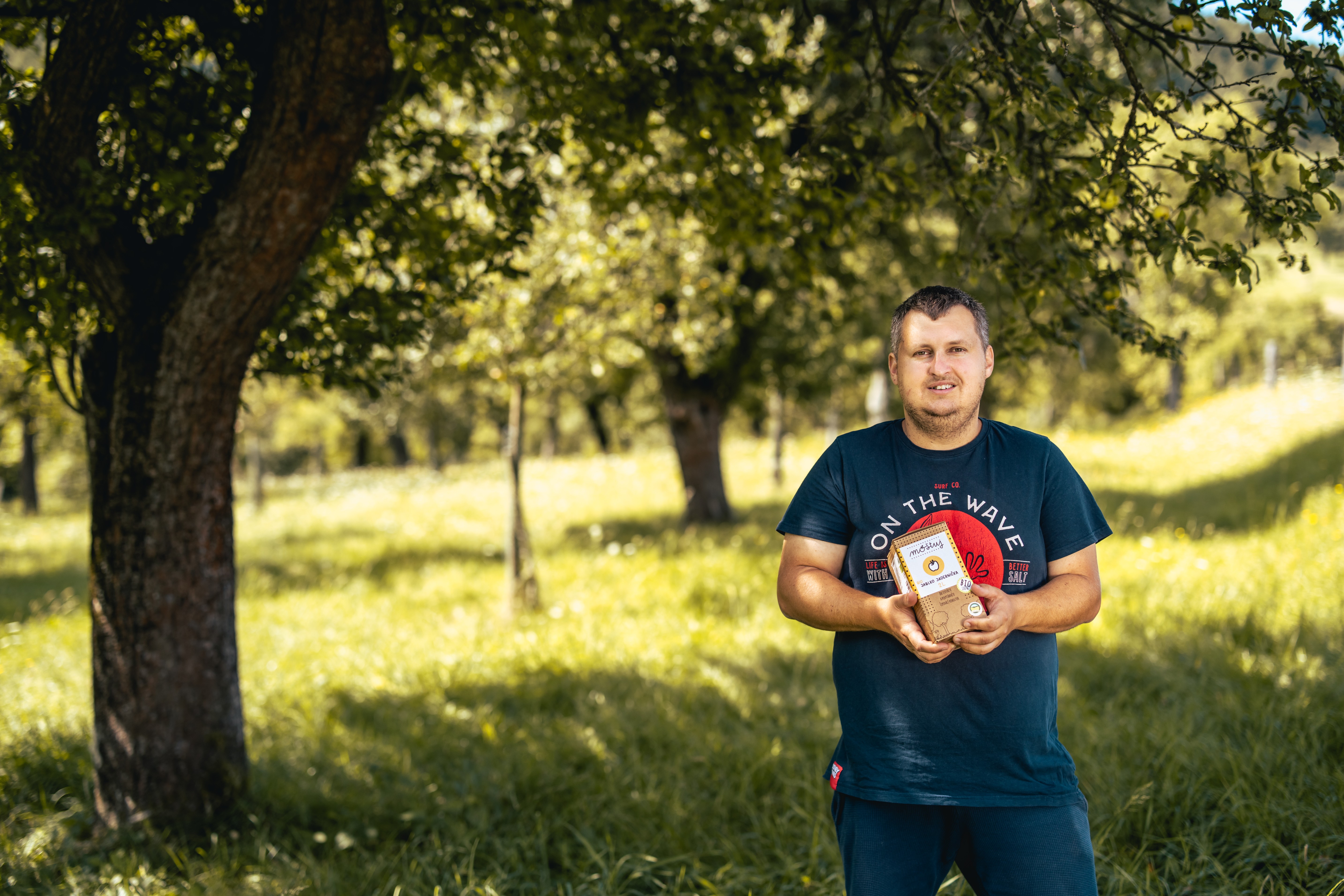 Když je horší úroda, sháním jablka po sousedech a v okolí, abych zachoval regionální původ ovoce. Většinou se snažíme, aby byla jablka co nejvíc místní a co nejvíc bio. Protože dost často lidé ovoce nijak neošetřují. A historicky tady na Valašsku mají lidé na zahradách ještě stále staré vysokokmenné odrůdy, takže ta jablka jsou ve výsledku chuťově totožná s našimi. Šlechtěná jablka poznáte na moštu podle prvního ochutnání – je sladký, ale chybí mu plnější tóny a mikroživiny.