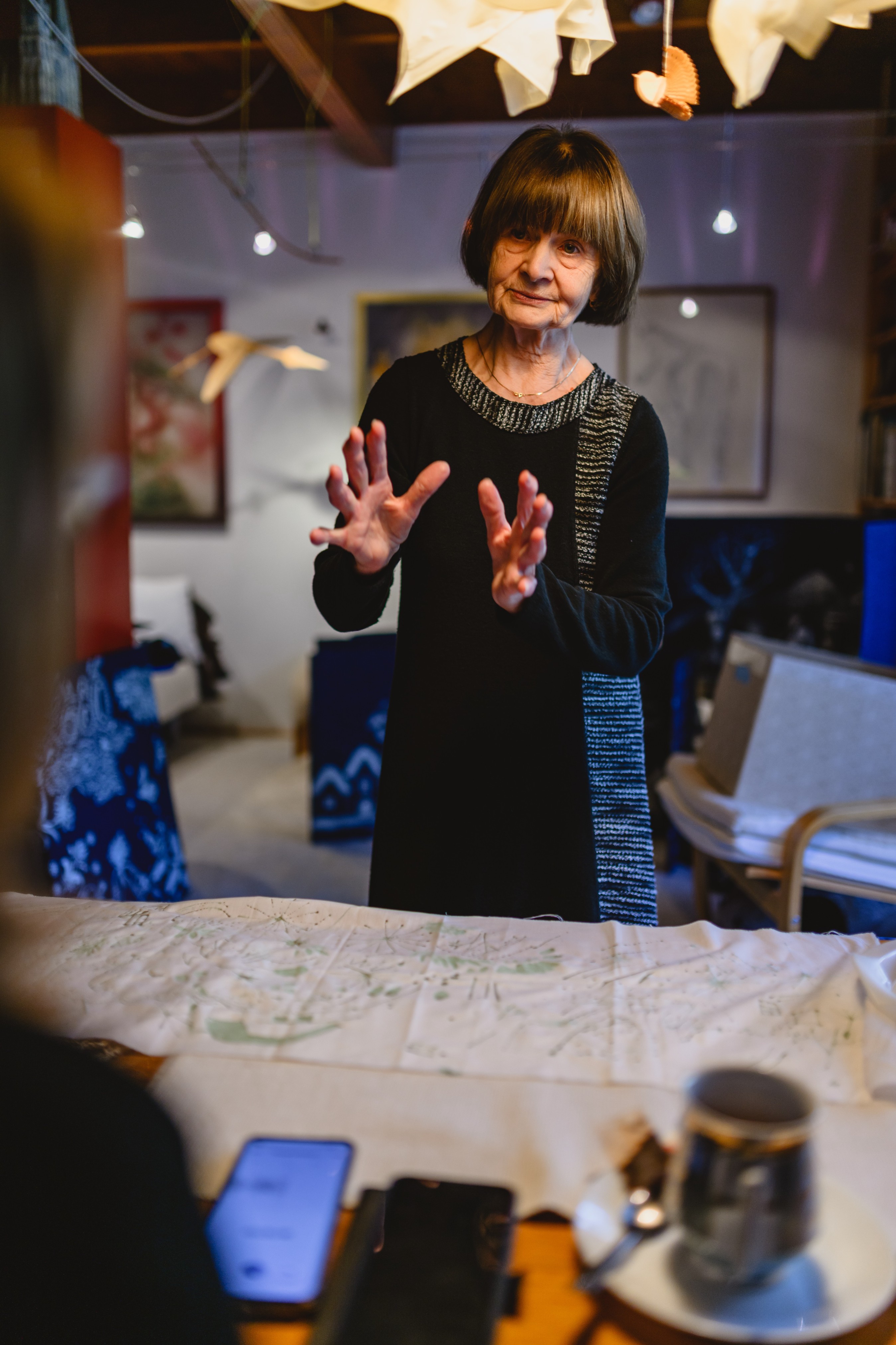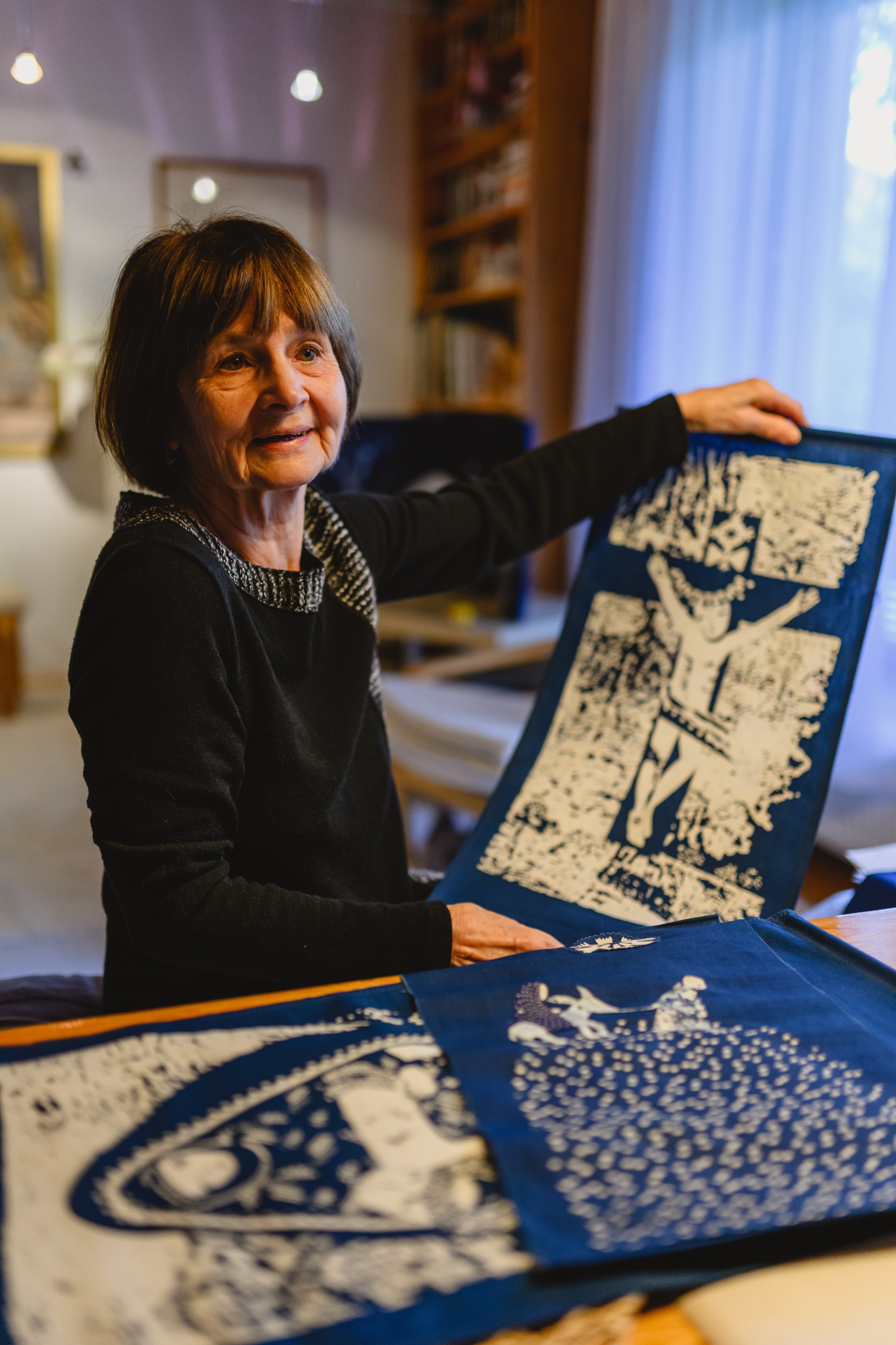 Modrotisk jí vyhovuje i proto, že podle jejích slov v sobě spojuje umění a řemeslo. „Na modrotisku je úžasné, že můžete staré vzory zkombinovat s moderními a pořád to vypadá krásně. Ať už jsou to lístečky, kytičky, puntíky, ta rozmanitost je prostě neskutečná. Věřím, že i v tom je síla modrotisku, aby přežil dále,“ vypráví s nadšením výtvarnice, která svůj rukodělný talent předala dvěma dcerám a vnučce, jež nyní studuje oděvní návrhářství.