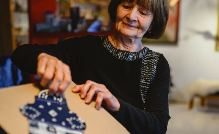 „Zakázal mi to. Dodnes mám velký komplex z toho, že se mi nepodařilo vyučit se řemeslu a že vlastně nic neumím, v ničem nejsem odborník,“ vypráví. Jenže výše zmíněný pohled do pracovny její slova vyvrací – všude kolem vás jsou ušité krásné figurky z modrotisku, jen modrá a bílá. To rozhodně není práce někoho, kdo „nic neumí“.