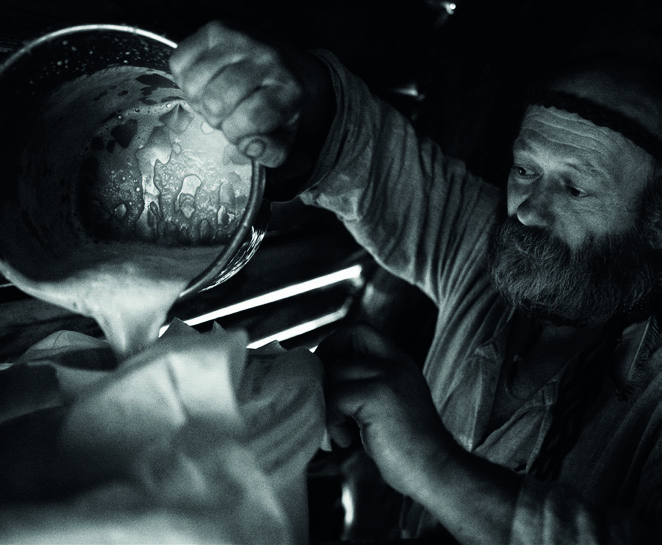 Sýr na brynzu, když se sýří, je lepší, když je jemnější. Není ani tak zahřátý. Posbíráš jej, necháš zkapat, a když ho dáš z formy ven, necháváš zrát při teplotě do 25 stupňů. A to trvá tak od tří do deseti dnů. Samozřejmě jej ošetřuješ. Omýváš slanou vodou, aby nesliznul, a tu hrudku otáčíš. Jakmile dozraje, pomeleš a případně dosolíš. A to je brynza. Já ji dělám na sucho. Čím sušší, tím je podle mne lepší. Ale někdo ji dodělává slanou vodou, aby byla vláčnější. Jsou i různé druhy brynzy. Jarní je jiná než podzimní.