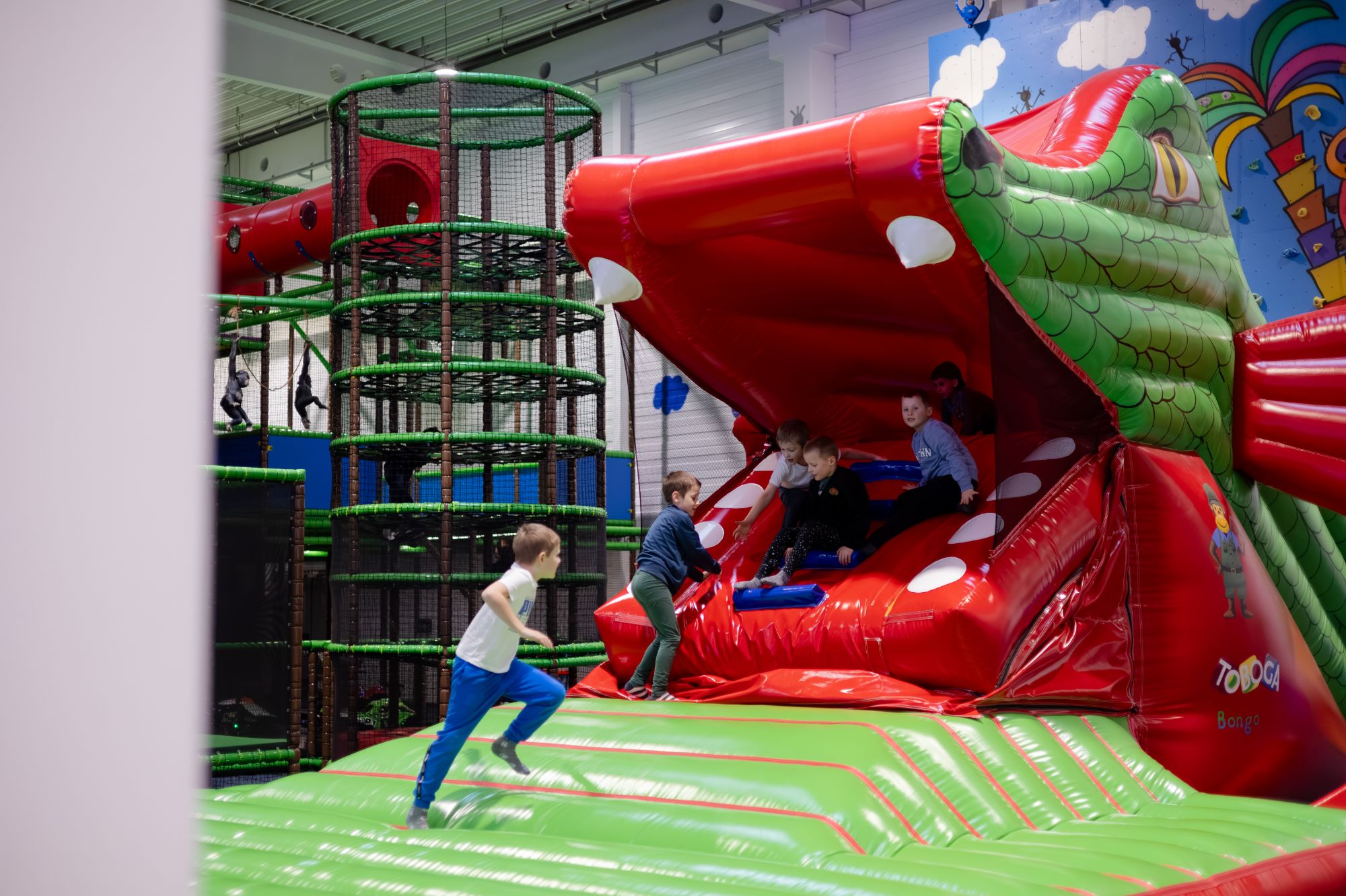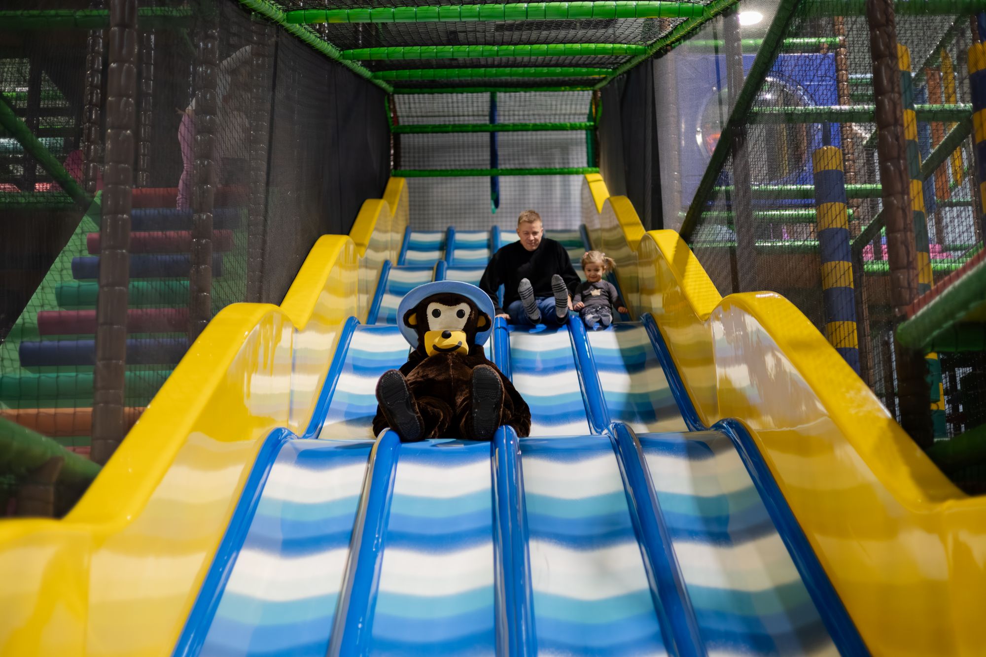 Tomáš Valášek: Ano. Bývalá skladištní hala v Brně se nám jevila jako velmi vhodná a také větší město nás lákalo pro start nezvyklého projektu. Začala se tedy etapa budování a vybavování našeho prvního parku BONGO v Brně. Po něm je také pojmenován náš maskot, opičák Bongo. Otevření vyšlo na prosinec 2008, což bylo pro nás velmi náročné období. Měli jsme tři malé děti, já jsem působil v mládežnickém hokeji ve Zlíně a do toho jsme stavěli i novou halu ve Zlíně na Vršavě. Do celého toho kolotoče se zapojila rodina. Naše dvě děti Lukáš a Anička, které v té době měly jedenáct a osm let, byly prvními a hlavními architekty našich parků. A nejmladší syn Jan, kterému tenkrát byl jeden rok, se stal nejmladším návštěvníkem, který všechny atrakce otestoval.