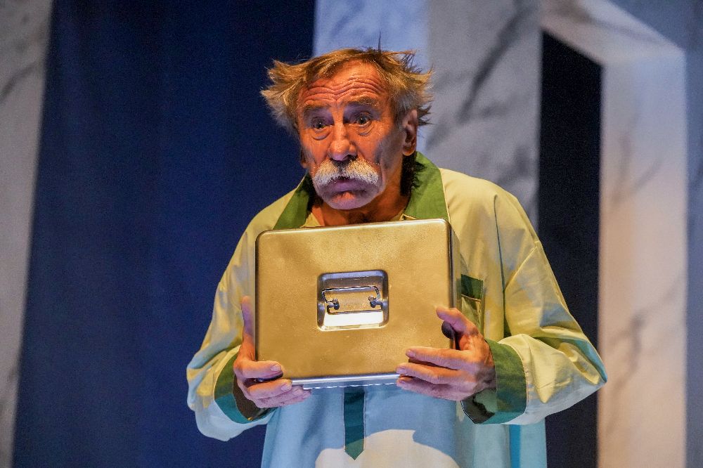 Hrál jsem napůl řecky a napůl česky. Všechny rekvizity a bránu jsem popsal řeckými výrazy a odjeli jsme na tři neděle do Atén. Hráli jsme kousek od hlavního náměstí od desíti večer každý den kromě pondělka. Narvaný divadlo každý den. A lidi za mnou začali chodit a mluvit na mě řecky. A já říkal: Neumím řecky ani ň! Umím jenom Kaliméra, Kalispéra, to je všechno. Naštěstí tam byl nějaký Vlado, ten to zachránil.