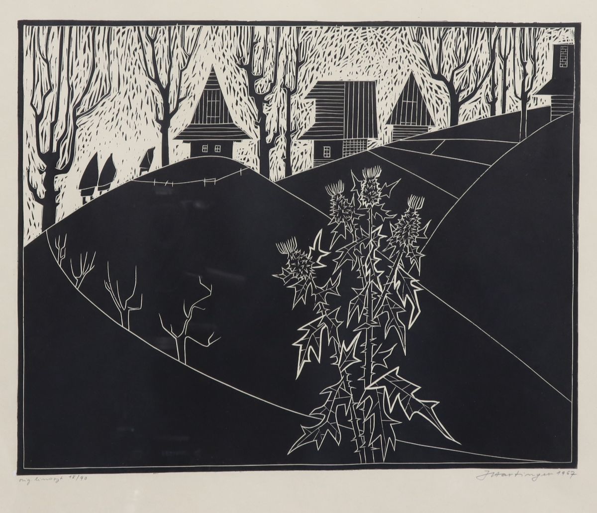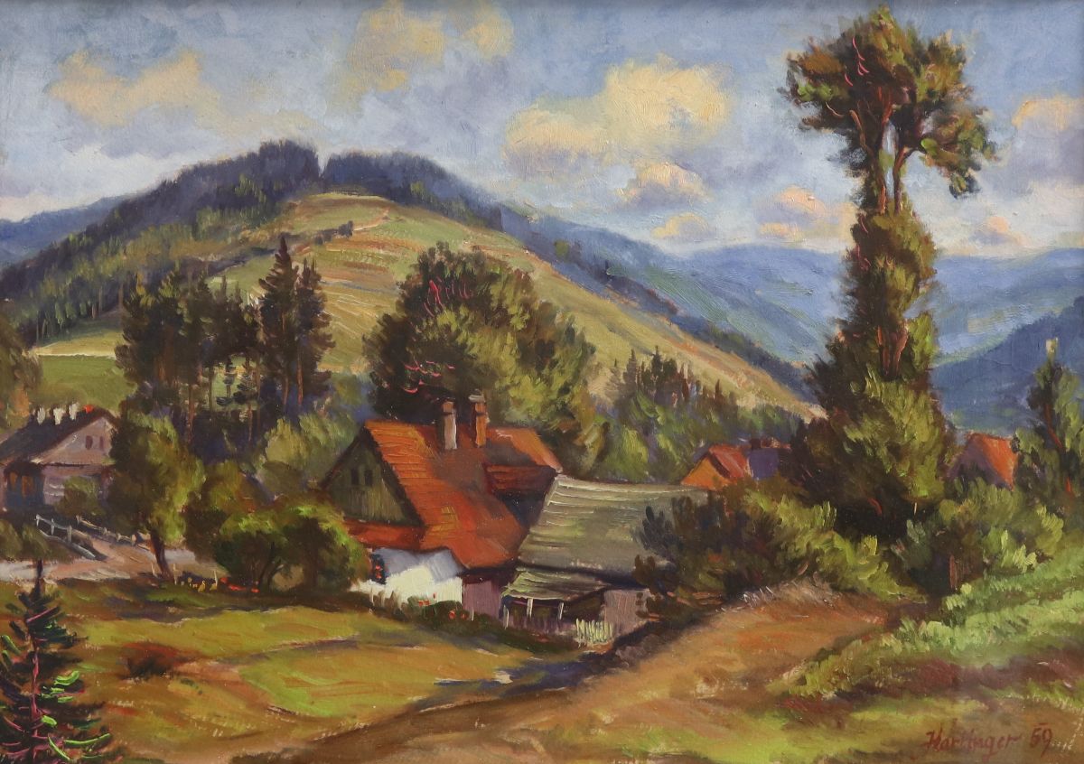 Jezdí k nám na prohlídku obrazů spousty návštěv. Říkají, prošel jste mnoho věhlasných světových galerií, třeba pařížský Louvre a další, viděl jste mnoho děl od věhlasných malířů, máte po tom všem ještě chuť malovat? Vždycky říkám: nejenom průtrž mračen, ale i kapka rosy dává rostlině vláhu. Takže nejen Picasso nebo Rembrandt, ale i Hartinger dává trochu vláhy tomu výtvarnému stromu, aby mohl růst.