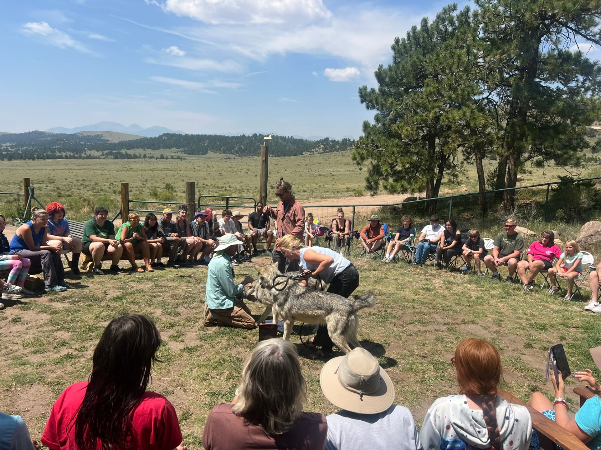 Návštěvníci Mission: Wolf už prošli celý areál, dozvěděli se, jak to tam funguje. Znají příběhy jednotlivých vlků, viděli je za plotem. Teď je čas potkat se s nimi doslova tváří v tvář. Tohle je tzv. puppy circle.